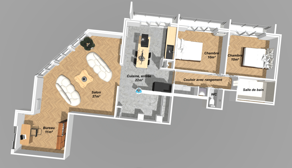 - 3 pièces – 89 m² – 5ème et dernier étage