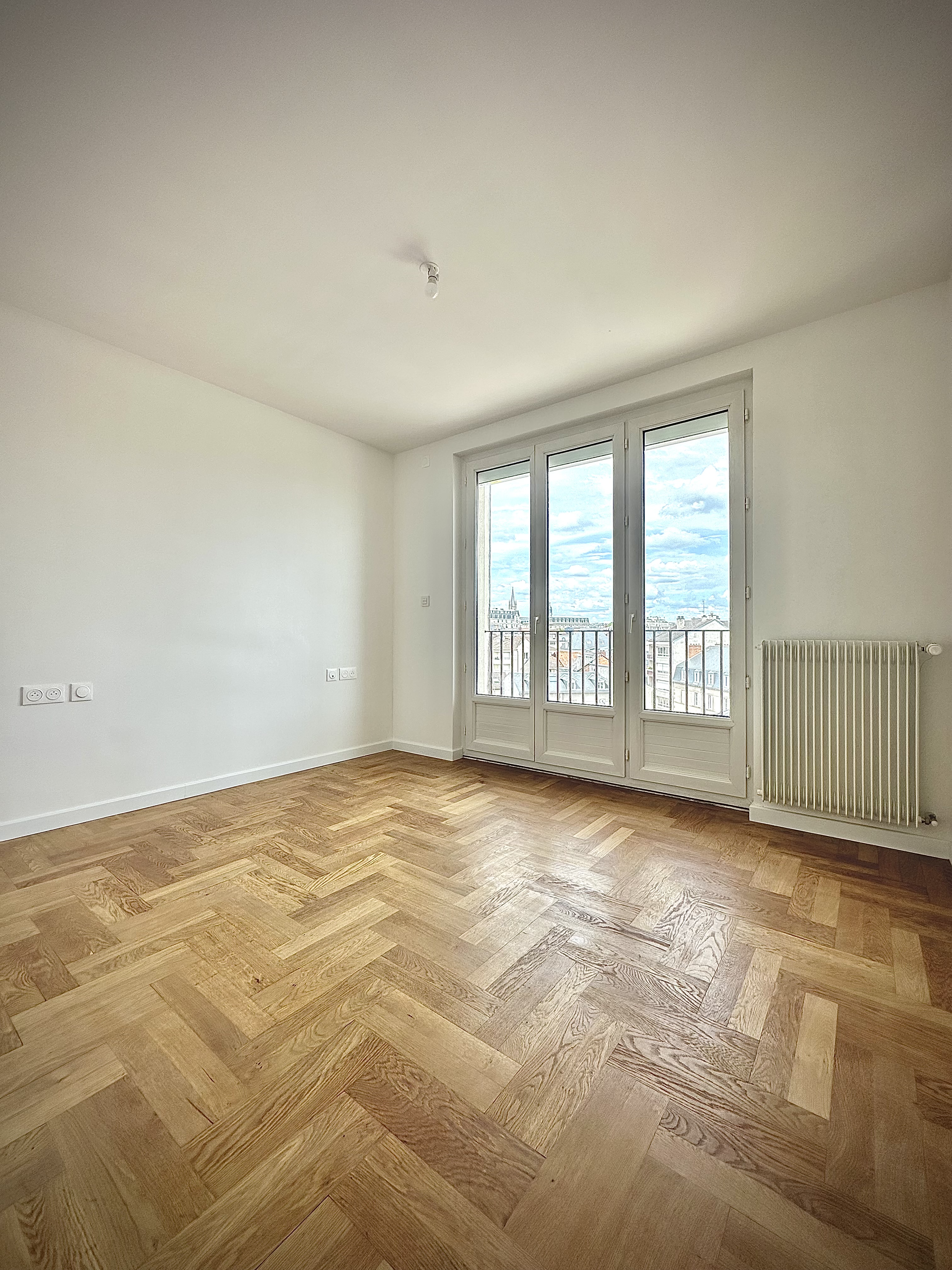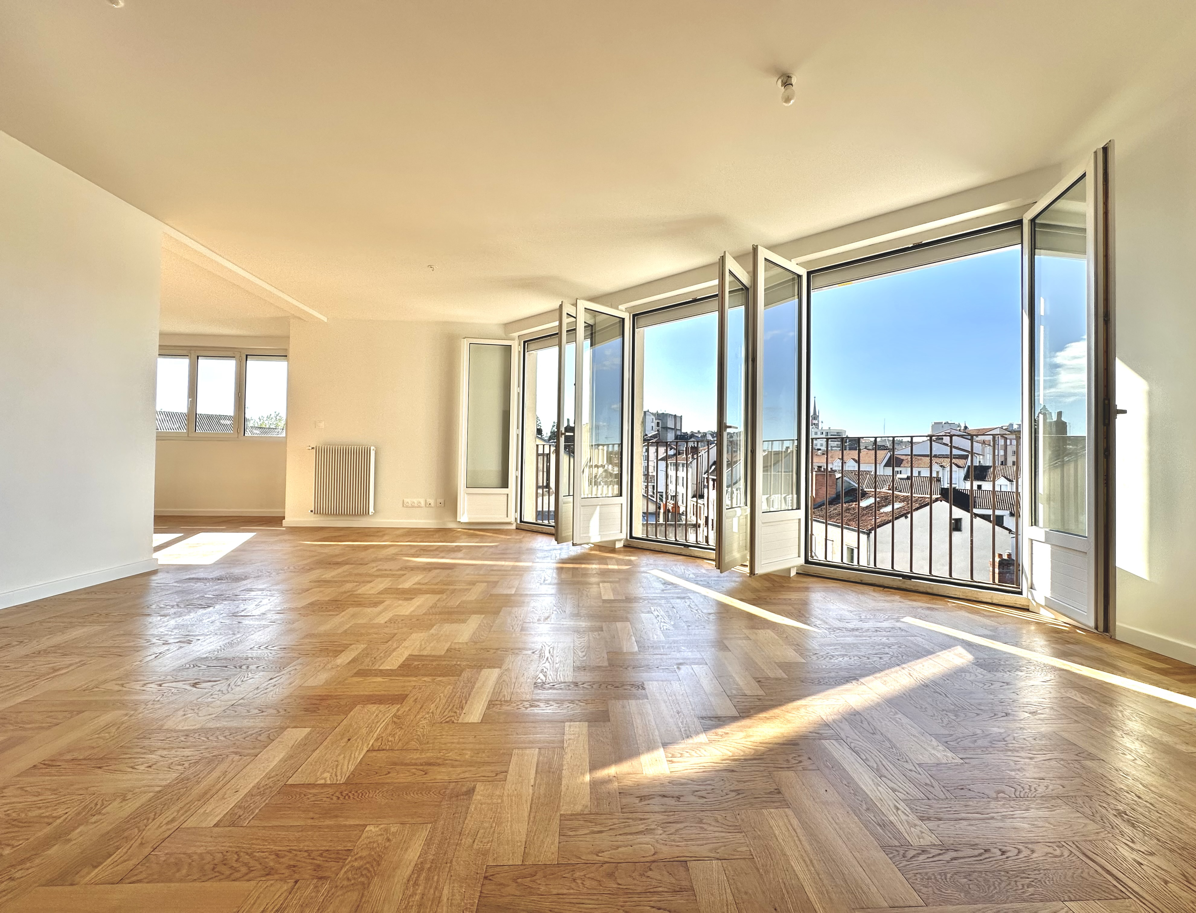 Découvrez en avant-première un appartement entièrement rénové de 89 m², au dernier étage, avec triple balcon et une vue imprenable sur la cathédrale.