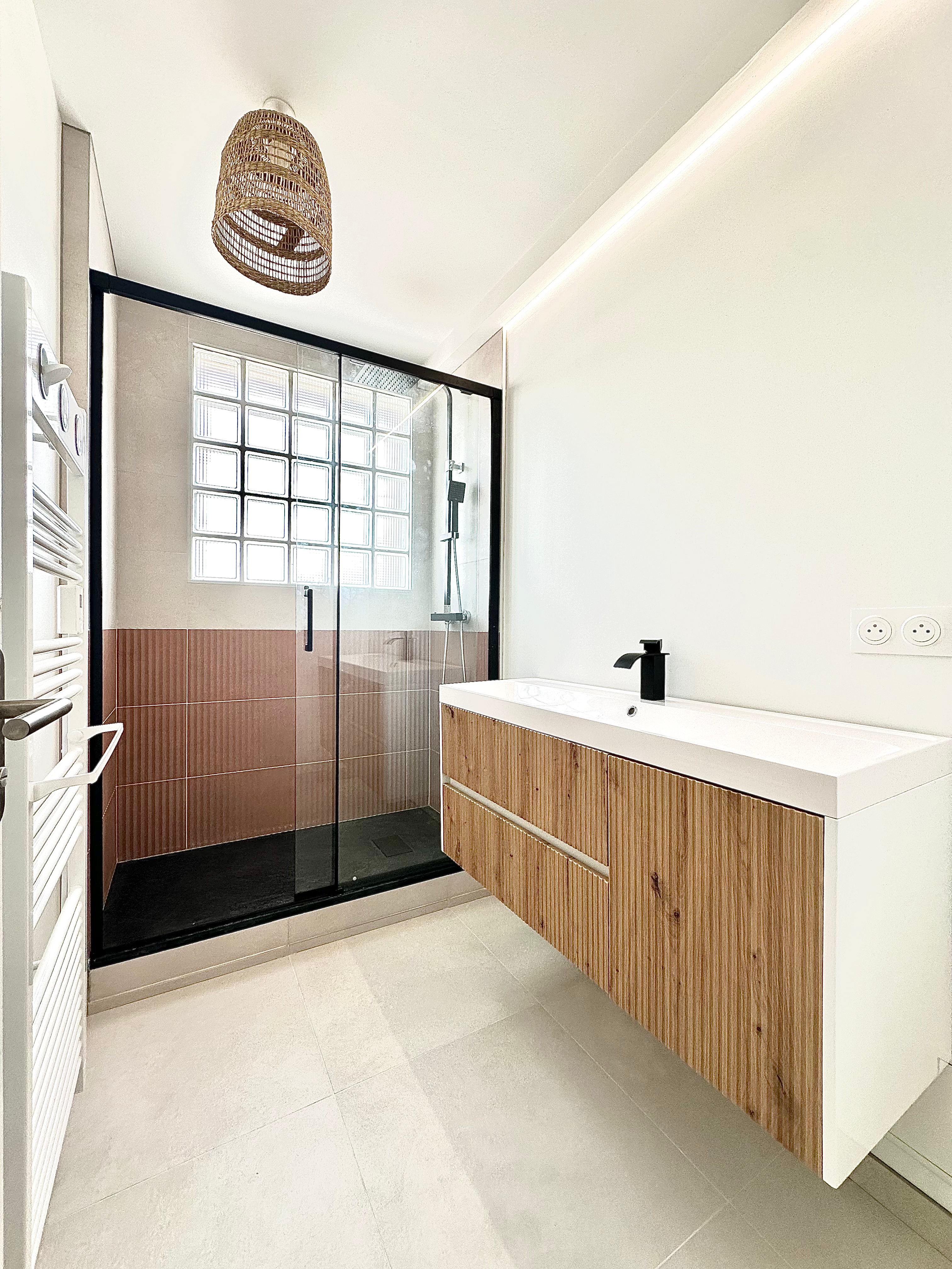 - Ratissage complet des murs avec trame en fibre de verre pour éviter les fissures